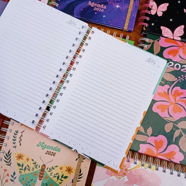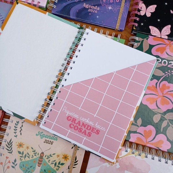 Agenda 2026 semanal tamaño A5 tapa dura laminada brillante de 2 mm con anillo metálico